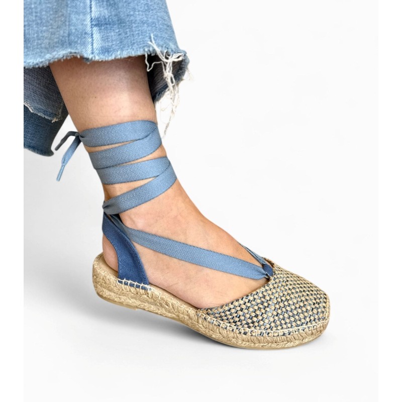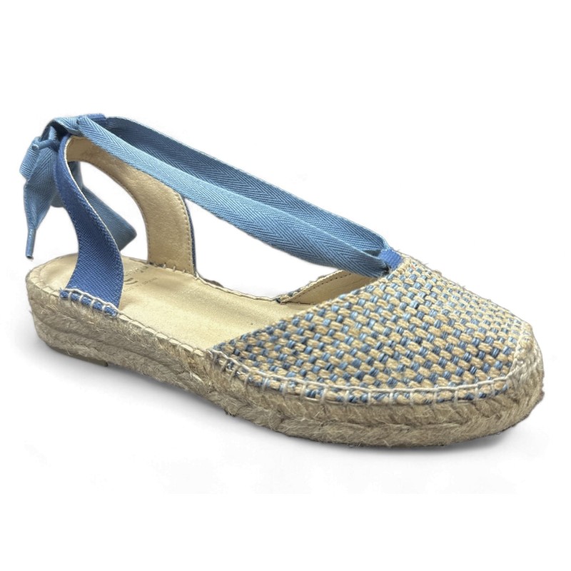Alpargatas hechas a mano en La Rioja de la marca propia AnseRioja como antiguamente, con cariño y esmero puntada tras puntada. Modelo super bonito y ponible tipo Valenciana te acompañara este verano sintiéndote estilosa y cómoda. Elaborado con tejido precioso de hilo azul, crudo y beige haciendo el dibujo de dicha cinta dándole ese toque artesanal. Plantilla acolchada interior para usarla durante horas y plantilla externa en tejido transpirable. Cosido a la suela de manera artesanal y pasando por el proceso de moldeado calor-frio. Suela de yute no pesa cuña 4 cuerda media cuña con base ancha. Si tienes el pie ancho te recomendamos avisarnos y podemos moldearla con calor para darle un pelín mas de anchura. Recomendamos talla habitual. Tallas de 35 al 41. Disponible por ahora en azul y beige.