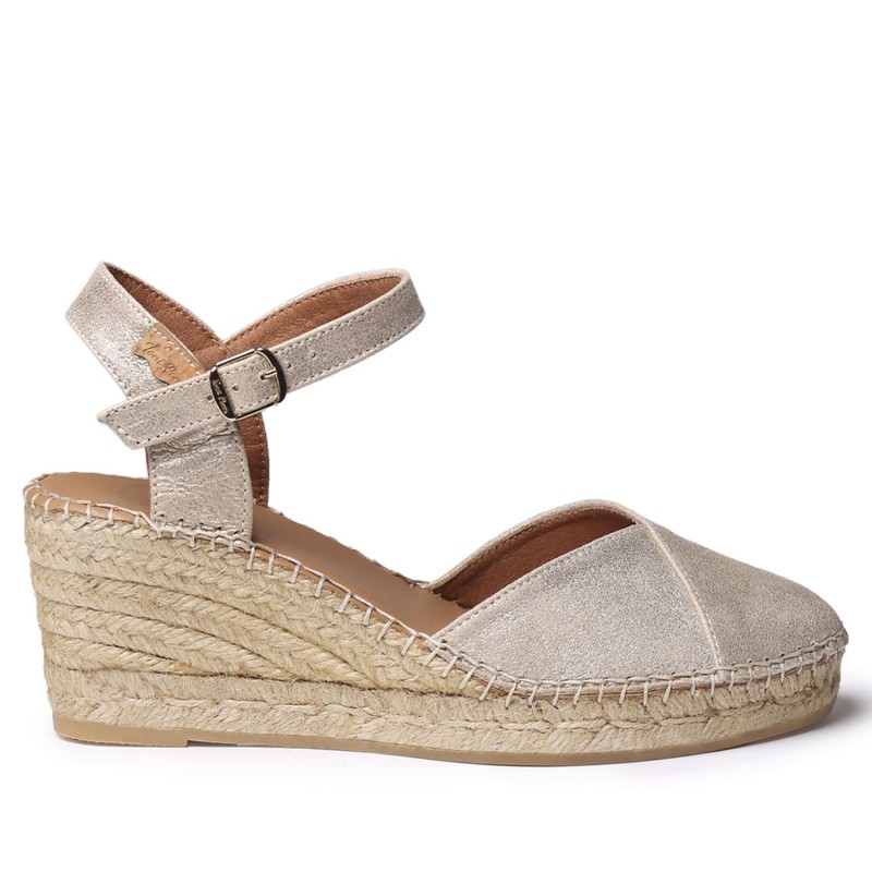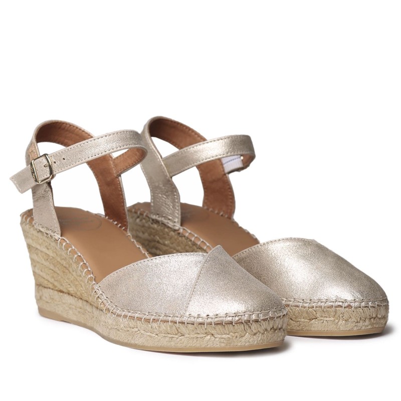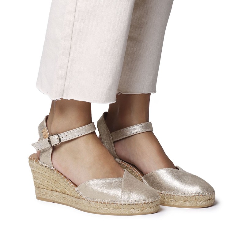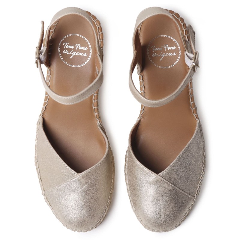 Alpargata de alta calidad Toni Pons. Esta alpargata de mujer está elaborada en piel natural con forro de tejido transpirable. La cuña de yute tiene una altura total de 6 cm, de los cuales 4 cm forman parte del tacón y 2 cm de la plataforma, esto hace que su comodidad sea extrema y alivie la base de los metatarsos. La base de la suela es de goma antideslizante vulcanizada. La plantilla interior está forrada en piel, contiene también debajo otra plantilla acolchada haciéndola super esponjosa. Cuenta con dos bandas elásticas contrastadas para una perfecta fijación al pie ajustándose a la necesidad sin apretar. Este diseño está cosido a mano puntada tras puntada en España. Este modelo calza la talla habitual, si estás entre dos tallas te recomendamos escoger la mas grande. Tiene que quedar que no sobre ya que es un material que tiende a adaptarse al pie y sus formas.