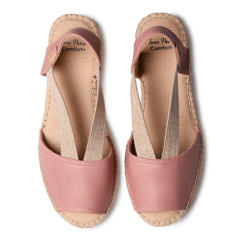 Alpargatas Tala de la marca nacional Toni Pons, esta alpargata forma parte de la colección Comfort + y está diseñada para ofrecer un calce más ancho de lo normal. Está elaborada en piel en colores lisos. Se trata de un diseño con la punta y el talón abiertos. La cuña de yute tiene una altura de 3,5 cm. La base de la suela está hecha de goma antideslizante vulcanizada. Cuenta con dos tiras elásticas laterales que dan una sujeción óptima al pie sin hacer daño. La plantilla interior acolchada forrada en piel para mayor comodidad en este caso con 6 mm de acolchado. Esta alpargata está cosida a mano en España totalmente artesanal. Este modelo calza la talla habitual para pies más anchos, si estás entre dos tallas te recomendamos escoger la más pequeña