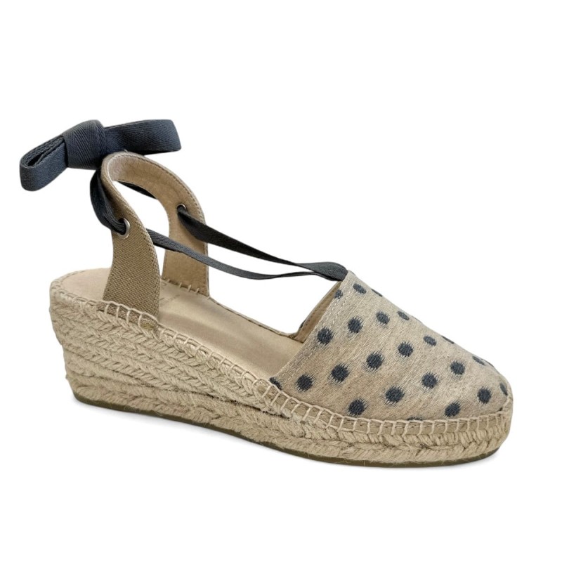 Alpargatas hechas a mano en La Rioja de marca propia como antiguamente, con cariño y esmero puntada tras puntada. Fabricada en tejido natural tipo lino con estampado de cucos amarillos. Pala escotada que recoge el pie espectacular. Trasera lino grueso natural con cintas amarillas cruzadas en el empeine dándole un estilazo a la pierna. Suela recubierta de yute muy ligera y cómoda cuña 5 cuerdas piso doble en la delantera lo que lo hace mas confortable en su uso para los metatarsos. Plantilla acolchada interna y otra de microfibra transpirable, las notaras muy acolchada. Recomendamos al ponerla abrir su trasera hacia los lados para que la planta del pie se acomode perfecto. El remonte a la suela o cosido se realiza totalmente a mano, pasando por el proceso de forma de la alpargata calor y frio. Si tienes el pie ancho te recomendamos avisarnos y podemos moldearla con calor para darle un pelín mas de anchura. Recomendamos talla habitual. El color es como en la fotografía. Esta disponible por ahora en amarilla.