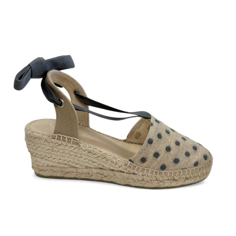 Alpargatas de alta calidad hechas en La Rioja en nuestra fabrica. Cosido artesanal como antiguamente puntada tras puntada. Pala confeccionada en piel Gaudí muy bonita y combinable. Trasera abierta de lino crudo con cinta al tono para atar al tobillo. Recoge muy bien el pie adaptándose perfectamente a su forma gracias al remonta y la calidad de los materiales. Suela ligera de yute de cuña 2 cuerda, al será colchada doble por su plantilla interna y otra externa notara su comodidad. Le recomendamos su talla habitual. Talla 35 al 41.