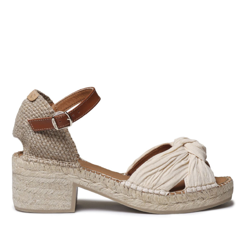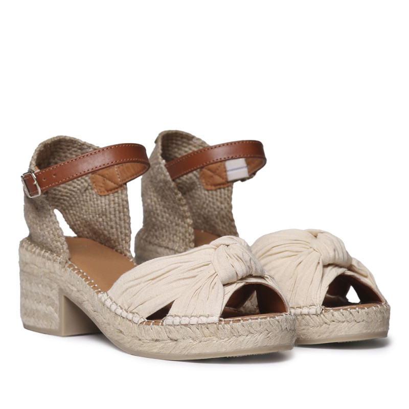 La alpargata preciosa y estilosa Julia para mujer atada al tobillo se elabora en tejido. La cuña de yute tiene una altura total de 7 cm, de los cuales 5 cm pertenecen al tacón, 2 cm a la suela siendo muy ligera y cómoda. Toda la cuña exterior está hecha de yute y la base de goma antideslizante, la suela interior está forrada en tejido. Este diseño está cosido a mano en España. Este modelo calza la talla habitual, si estás entre dos tallas te recomendamos escoger la más grande. Queda genial con vestidos y pantalones fluidos. Perfecta para estilizar la pierna sin sufrir.