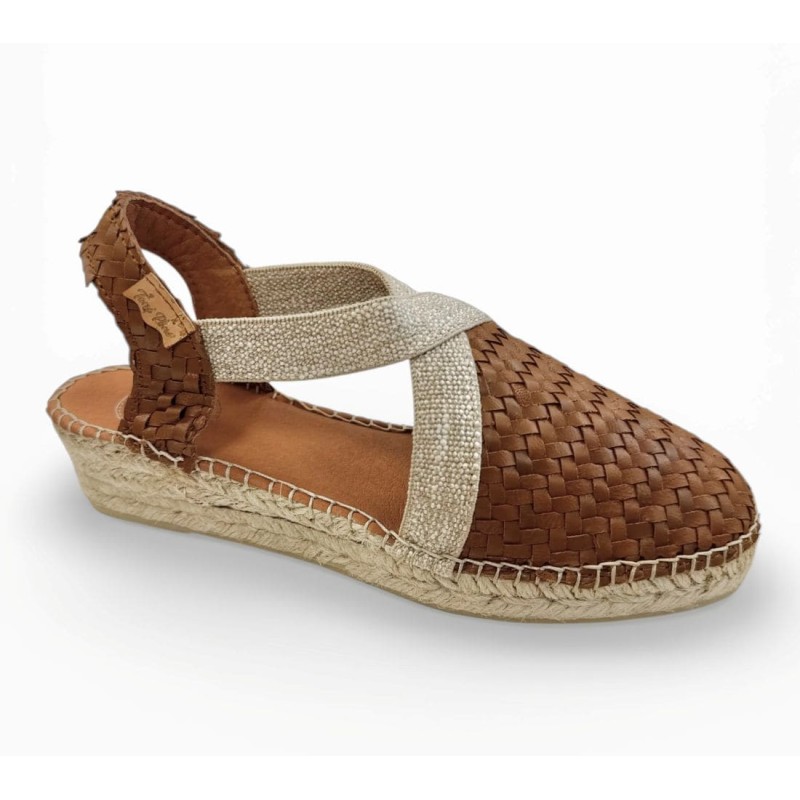 Alpargata de alta calidad Toni Pons. Esta alpargata de mujer está elaborada en piel natural con forro de tejido transpirable. La cuña de yute tiene una altura total de 6 cm, de los cuales 4 cm forman parte del tacón y 2 cm de la plataforma, esto hace que su comodidad sea extrema y alivie la base de los metatarsos. La base de la suela es de goma antideslizante vulcanizada. La plantilla interior está forrada en piel, contiene también debajo otra plantilla acolchada haciéndola super esponjosa. Cuenta con dos bandas elásticas contrastadas para una perfecta fijación al pie ajustándose a la necesidad sin apretar. Este diseño está cosido a mano puntada tras puntada en España. Este modelo calza la talla habitual, si estás entre dos tallas te recomendamos escoger la mas grande. Tiene que quedar que no sobre ya que es un material que tiende a adaptarse al pie y sus formas.