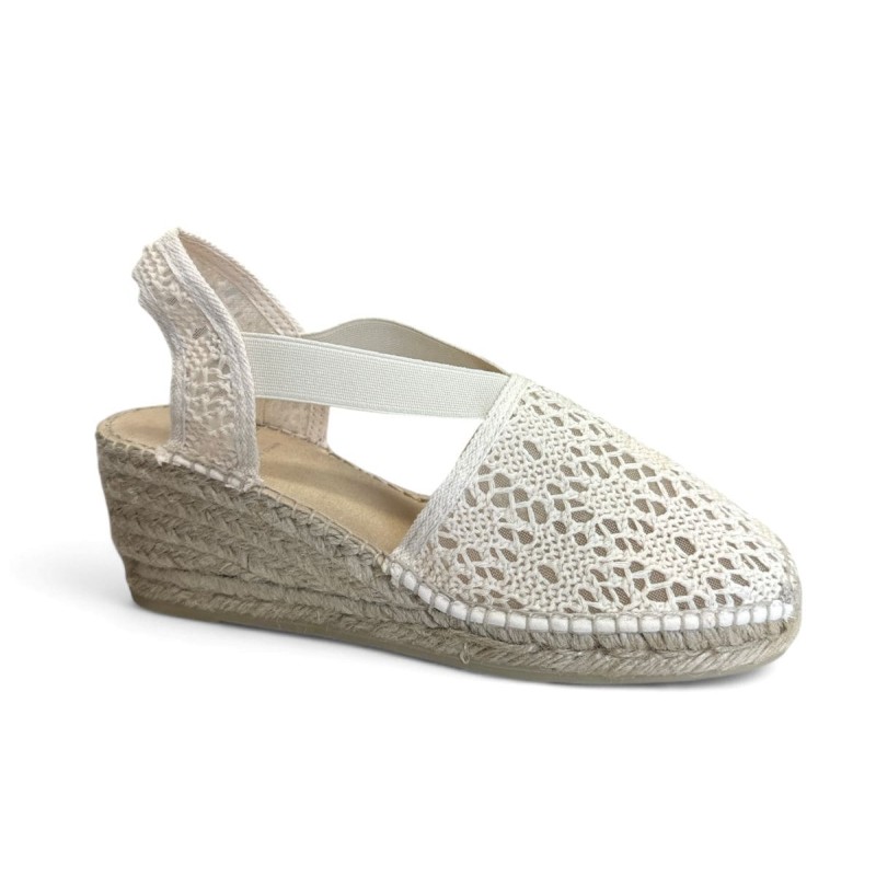 Alpargata de alta calidad fabricada en nuestra fabrica en La Rioja. Modelo confeccionado con un tejido muy bonito con un punto pequeño de brillo y con textura en relieve. Trasera con talonera artesanal y tira pulsera con hebilla para un ajuste perfecto gracias a su elástico interior. Pala forrada en el escote. Plantilla acolchada de 4 mm mas otra de tejido transpirable, notara mucha comodidad. Suela de yute ligera con 4 cuerdas de altura con base ancha lo que la hace muy estable y cómoda. Cosido a la suela del corte totalmente artesanal como antiguamente. Si lo deseas por que tienes el pie un poco anchito te la podemos moldear en la fabrica. Recomendamos talla habitual. El cosido es manejable para que se lo pueda adaptar a su pie.
