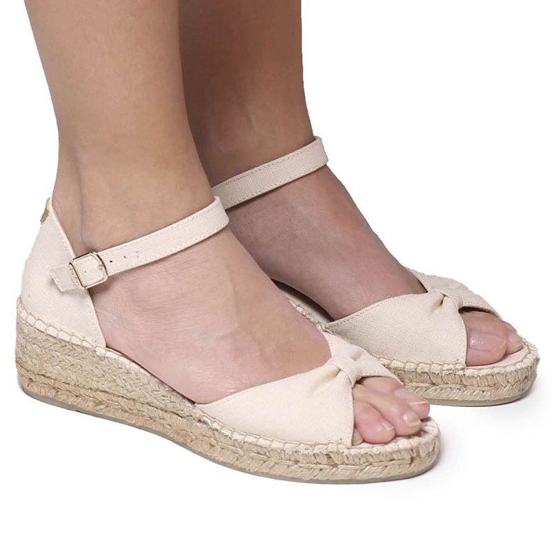 Modelo de alpargatas hechas a mano en La Rioja de la marca propia AnseRioja como antiguamente, con cariño y esmero puntada tras puntada. Modelo que te acompañará este verano sintiéndote estilosa y cómoda. Elaborado con tejido estilo ganchillo transpirable con forro de rejilla. Plantilla acolchada interior para usarla durante horas y plantilla externa en tejido transpirable. Sujeción mediante dos elásticos perfectamente confeccionados para adaptarse a ti. Cosido a la suela de manera artesanal y pasando por el proceso de moldeado calor-frío. Suela de yute no pesa cuña 4 cuerda media cuña con base ancha. Si tienes el pie ancho te recomendamos avisarnos y podemos moldear con calor para darle un pelín más de anchura. Recomendamos talla habitual tiende a ceder. Combínala con cualquier falda fluida o pantalón veraniego.