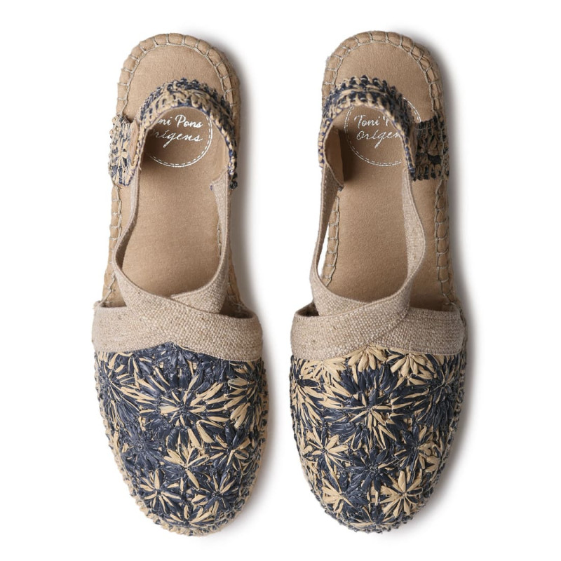 Alpargatas originales y elegantes Doris en oro. Esta alpargata de Toni Pons para mujer con tacón bajo combina artesanía y estilo contemporáneo. Está elaborada en tejido trenzado metalizado, que aporta un brillo sutil. Su diseño presenta tiras cruzadas en la parte delantera y una pulsera elástica trasera, que ofrece un ajuste cómodo y práctico. El tacón ancho en yute, junto con la plantilla acolchada, garantizan confort y estabilidad en cada paso. Este diseño está cosido a mano en España y tiene una altura total de 4 cm. Este modelo calza la talla habitual, si estás entre dos tallas te recomendamos escoger la más grande.