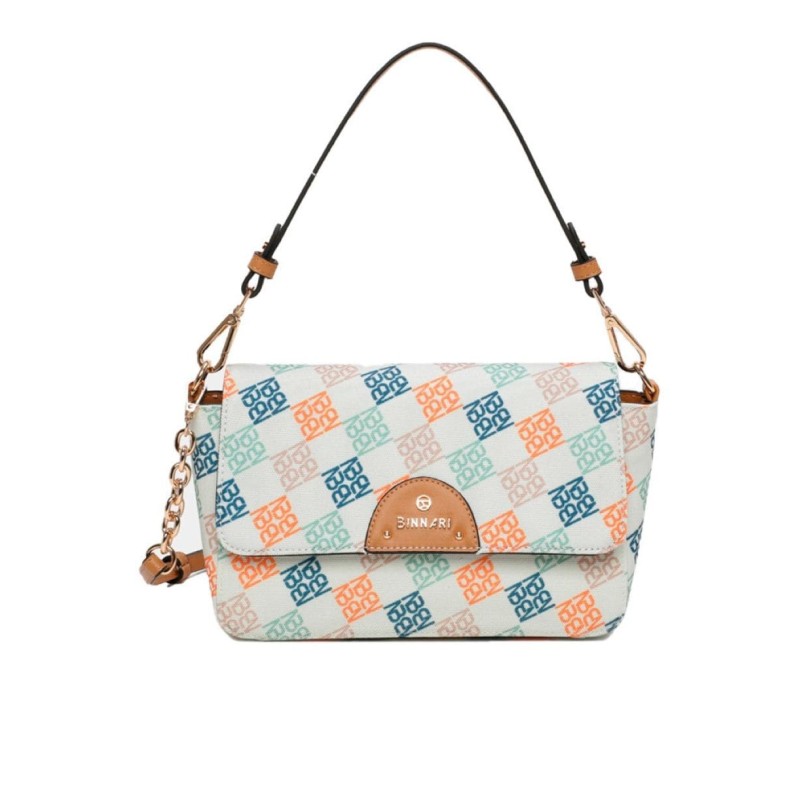 Bolso bandolera de vestir de hombro Narcea confeccionado em rafia. Está disponible en 2 colores:multi color, multi metal y multi negrol . En el exterior tiene el chapón Binnari.Lleva en su interior una bolsa textil. Un bolso todoterreno que te podrá acompañar todos los días de verano con vestido veraniegos.