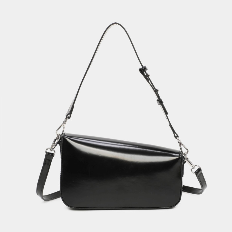 Bolso bandolera Benedetta disponible en color negro, bronce y oro. Su asas es ajustable para una mayor comodidad. Parte delantera con el logotipo. Se accede a su interior por medio de una cremallera superior. En él, encontraremos varios bolsillos, uno de ellos con cremallera, aportando así más seguridad. Los detalles metálicos son de color oro claro. Confección en PU de alta calidad aportando al producto una suavidad muy agradable.
