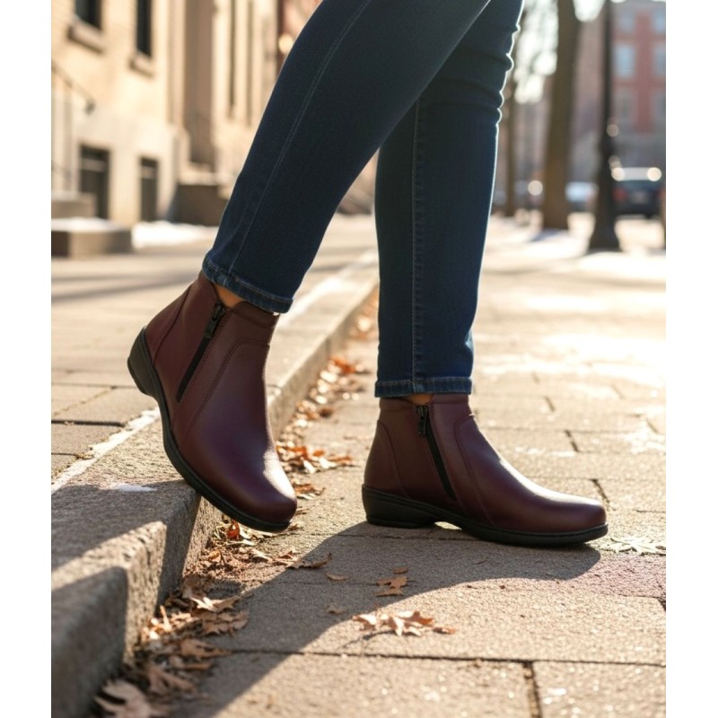 Botines G Comfort de una calidad excepcional y comodidad absoluta. Horma ancho especial ideales para pies anchos, delicados o con plantillas ortopédicas. Fabricados en piel de Yak nobuk muy suave que se adapta a tu pie a la perfección. Contienen membrana impermeable para los días de lluvia y frío. Sistema de dos cremalleras que facilitan la entrada de plantillas especiales y del propio pie. Plantilla muy acolchada con forro de piel natural. Suela gruesa antideslizante y ligera. Caña de tobillo ancha. La talla es amplia, normalmente damos la habitual. Calidad en tus pies.
