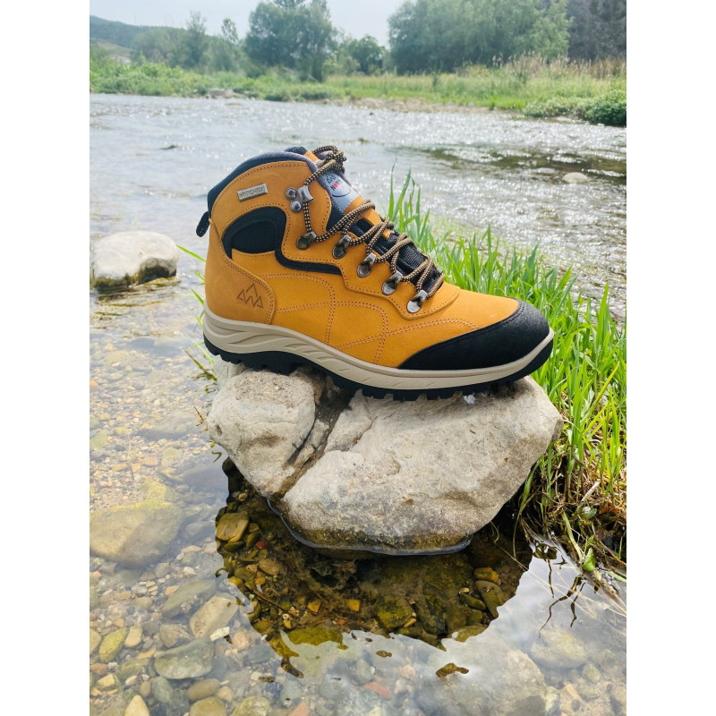 Botas para hombre de montaña sin impermeable. Fabricadas en La Rioja en materiales de primera calidad, piel nobuk marrón, suela de caucho natural antideslizante vulcanizada. Caña media con cordones. Plantillas extraíbles. Ideal para días en los que no te mojas ya que transpiran más al no tener Membrana impermeable. Recomendamos elegir una talla más que en el calzado habitual de calle.