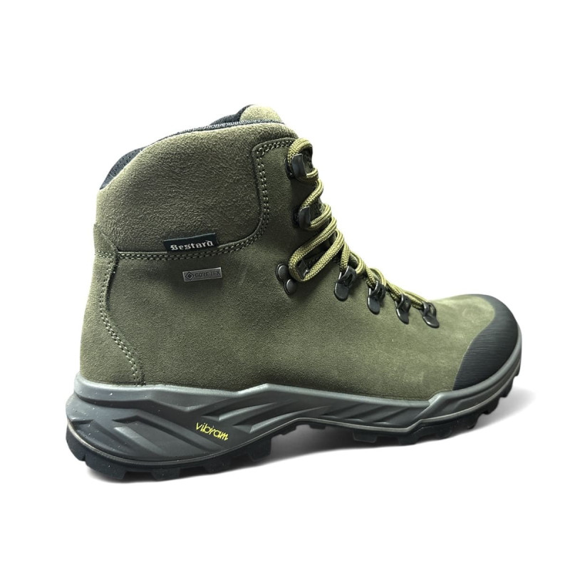 Bota de corte clásico y caña alta de la marca nacional Bestard alta calidad. Fabricada con un upper de piel Perwanger de 2,2 mm contiene mas grosor de piel. Modelo perfecto para un uso especifico en caza gracias a sus prestaciones. Confeccionada con membrana impermeable Gore Tex Performance Comfort manteniendo un grado elevado de transpiración. Suela Vibram Foura ofrece el agarre y la resistencia optima para todo tipo de superficies. Este modelo esta reforzado con una bandoleta de goma por todo el contorno de la misma para máxima durabilidad. Cordones hidrofugados resistentes a la abrasión con clip lateral que hace que el cordón no se afloje al andar. Recomendamos elegir una talla superior que en el calzado normal de diario y elegir un buen calcetín. Fabricado en Mallorca.