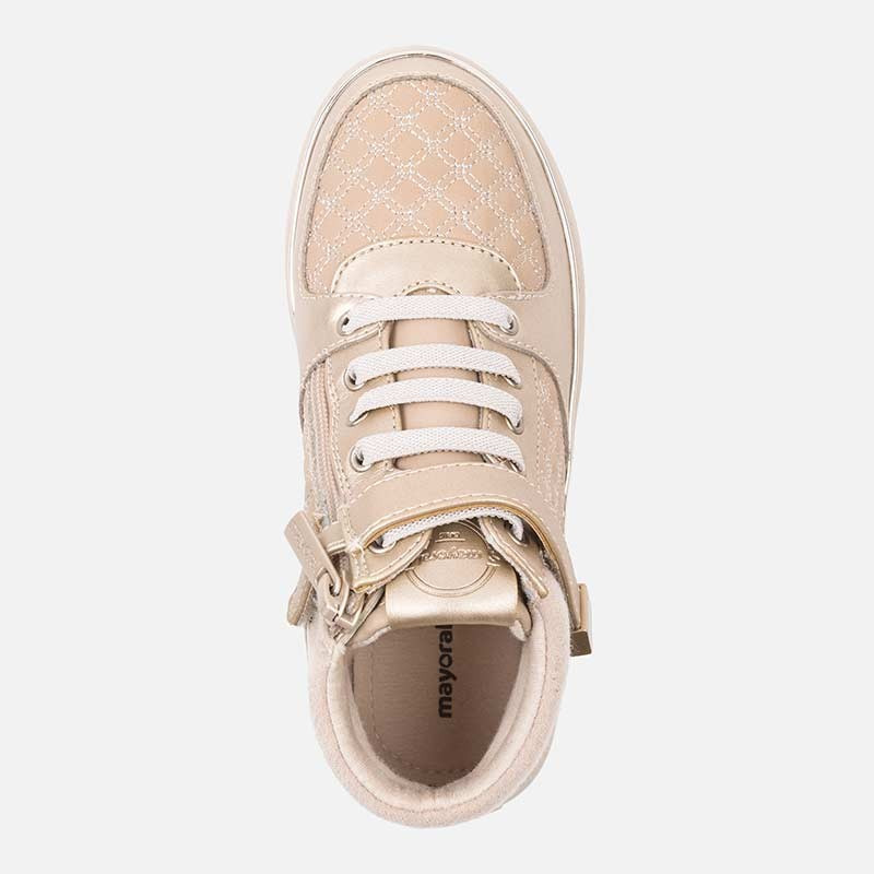 Botín vestido-sport de MAYORAL. Combinado con unas mallas o leotardos y falda un acierto seguro. Super cómodo para nuestras peques de la casa. Collarín tobillero acolchado para mejor adaptación al movimiento. Calce de talla amplio.