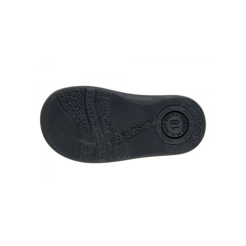 Bota para niño de la marca nacional Pablosky. Fabricada con horma fisiológica para el correcto desarrollo del pie. Tecnología System, piel de primera calidad que garantiza la mejor transpiración para el pie. Forro sin costuras de microfibra resistente al roce. Plantilla anatómica absorbente y antibacterias. Piso de goma antideslizante y de alta resistencia que incorpora la tecnología SUPERFLEX favoreciendo la flexión normal del pie. Protectores interiores en talón y puntera, incorpora puntera de goma exterior así evitar el desgaste en la puntera de la bota. Doble velcro resistente. Los únicos fabricados en España y avalados por expertos podólogos SEBIOR: Sociedad Española de Biomecánica y Ortopodología. Aviso el precio varia según el tamaño de la bota. Calce normal.