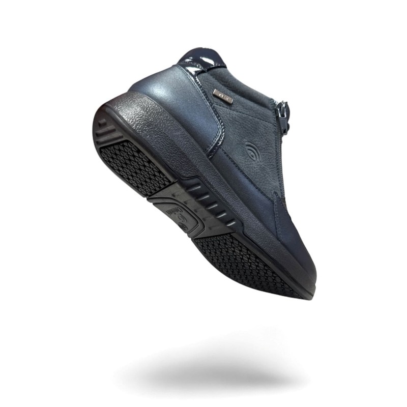 Botín sport Ancho especial fabricado en La Rioja. Confeccionado en piel charol que se adapta a juanetes o a la a anchura del piel sin dolor. Los botines mas cómodos para el día a día. Sistema de cierre mediante cremallera una interior y otra exterior. Suela muy ligera y aislante del frio totalmente antideslizante. En el interior recibirá dos pares de plantillas para adaptarlo mejor a su horma. Calce talla habitual. Plantilla transpirable y extraíble. Hecho en España. La piel es muy suave. Si tiene dudas con la talla llamenos.
