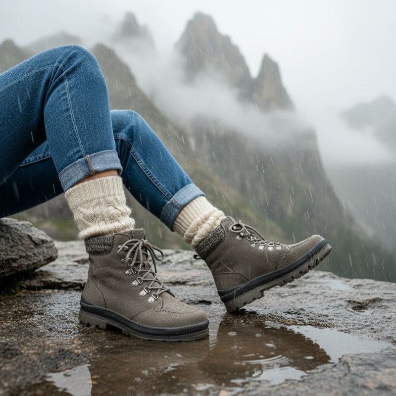 Estas botas para mujer de alta calidad serán tus aliadas todo el invierno, te dará igual el frío, la lluvia ya que te protegerán sintiéndote comodisima. Te aportaran ligereza por su suela anti resbalones. Notarás una sujeción perfecta en tobillo ajustando al gusto. Piel nobuck de primera calidad con membrana TEX para protegerte de la humedad. Forro calentito interior de lana de oveja. Calzado para cuidar tus pies y despreocuparte en tus viajes de invierno. Recomendamos elegir tu talla o si esta en dudas entre dos elegir la mayor. Plantillas extraíbles de piel.