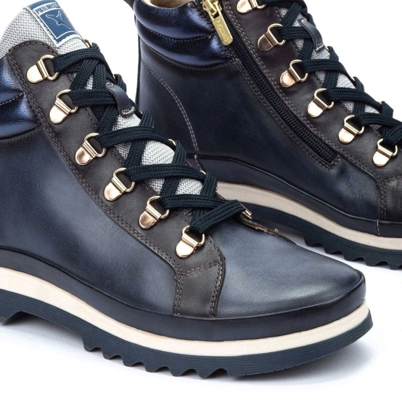 Aunque durante el día a día arreglarse no sea tan importante para muchas personas, es necesario prestar especial atención a ese calzado que es cómodo pero que te hace sentir auténtica todo el tiempo. Es lo que sucede con botines para mujer Pikolinos Vigo, cuyos cordones consiguen aportar la máxima comodidad al adaptarse al pie a la perfección. Fabricado con piel 100%, forro textil térmico. Plantillas extraíbles acolchada. Calce del botín amplio-talla normal. Dar crema incolora de vez en cuando. No usar toallitas húmedas en la piel.
