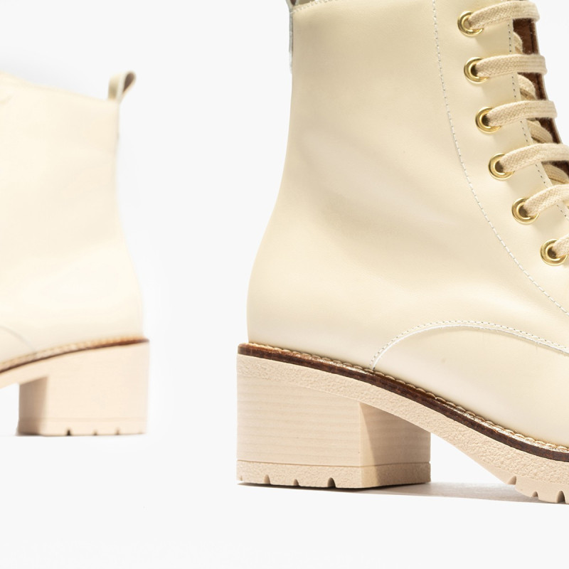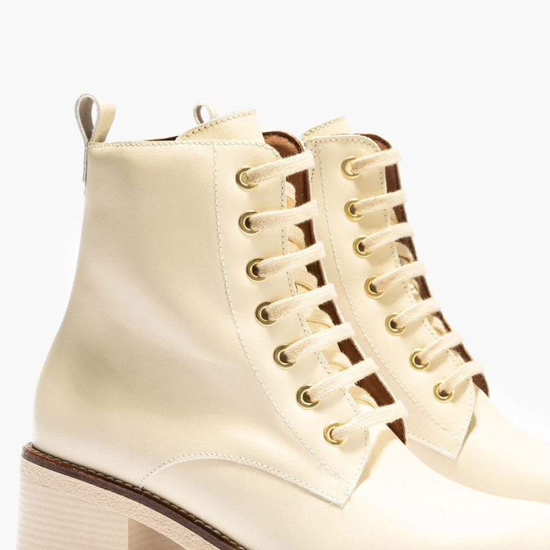 Media bota o botín con elástico y cremallera para mujer en color crema. El complemento perfecto para el invierno en nuestra colección de otoño-invierno. Esta bota sport/casual de líneas sencillas ofrece un gran nivel de confort y una estética atractiva. Con una medida perfecta tanto para pantalón como vestidos, te mantendrás cómoda y a la moda durante la temporada de frío. Fabricada en piel vacuno de calidad, plantilla extraíble y una suela antideslizante y muy cómoda. Calce normal.
