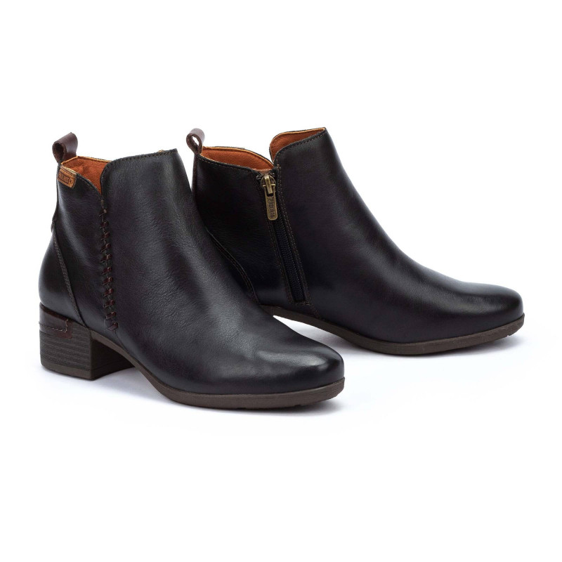 Luce radiante con tus botines de calidad Medina de Pikolinos, los tenemos en color negro y cuero natural. Fabricados para la mujer activa y moderna que necesita un botín para todo, tanto para vestir como para diaria. Perfectos para días fríos gracias a sus forros térmicos. Confeccionados con piel de vacuno de primera calidad. El modelo Medina cuenta con una cremallera interna y una plantilla acolchada para que te sientas cómoda durante horas. Su tacón de bloque te brinda estabilidad y antideslizamiento. Recomendamos elegir tu talla habitual y si tienes dudas contactanos.