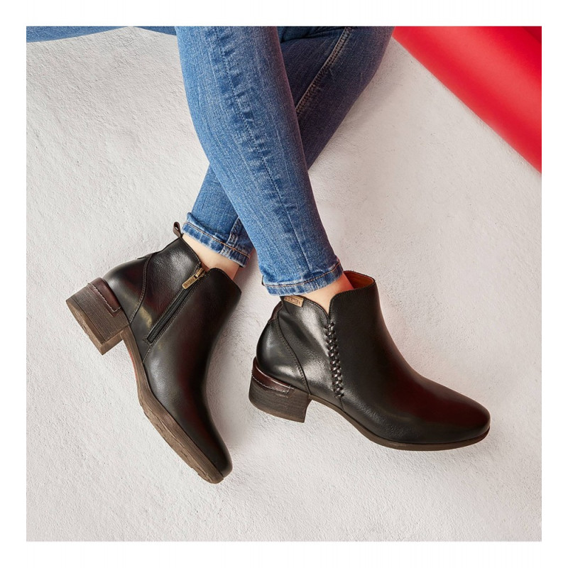Nueva temporada. Si buscas unos botines que te acompañen en el día a día y que se adapten a la perfección a cada una de tus prendas, has llegado al calzado ideal para ti. Se trata de los botines para mujer Pikolinos Málaga que, además de elegantes, son muy cómodos. Apuesta por la calidad. Fabricado en piel vacuno, forro piel y tejido. Plantilla acolchada, cierre cremallera. Tacón de 4 cm muy cómodo. Calce normal-amplio.