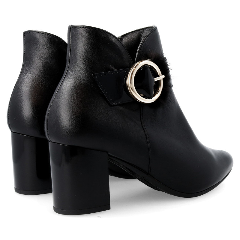 Botín de vestir en piel color negro tacón cuadrado Pitillos para mujer. Características: Cierre con cremallera, tacón 6 cm, suela de goma, exterior piel, forro interior textil transpirable y plantilla extraíble. Térmico y súper absorbente: forros y plantillas transpirables que absorben el sudor combatiendo la aparición de olores. Además de proporcionarle una agradable sensación de confort y bienestar. Calce normal. Hecho en España.