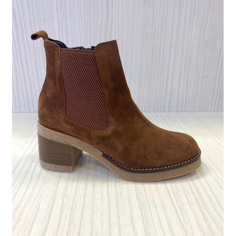 Jordana marca nacional de calzado. Bota con un calce excepcional, fabricada en piel nobuk de calidad que se adapta al pie. Tacón medio muy cómodo con suela totalmente antideslizante. Cremallera en su interior. Caña media. Calce talla habitual. Hecho en España.