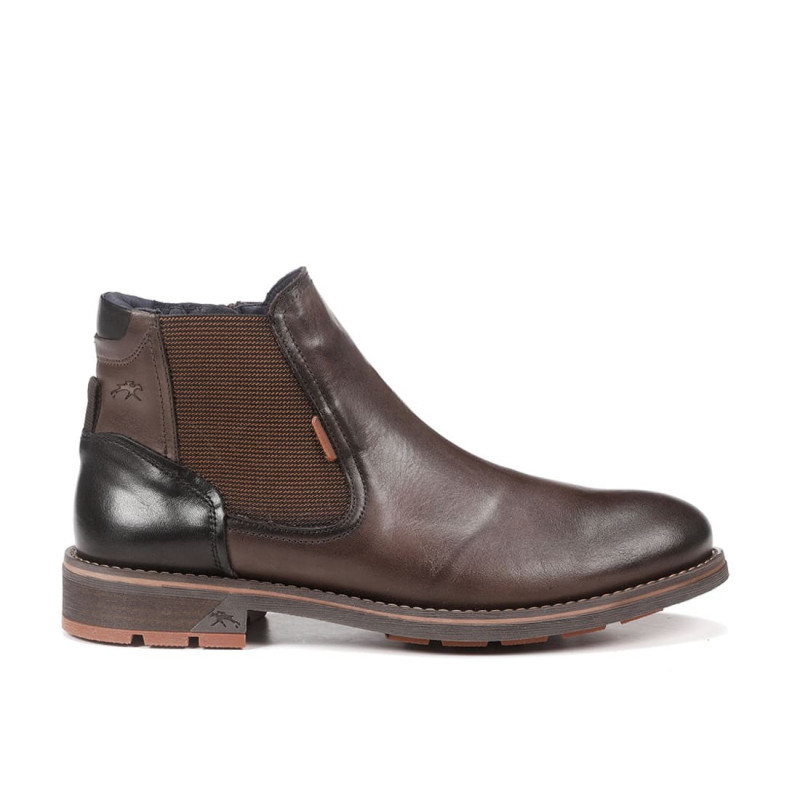 Bota Terry para hombre de piel de vacuno, fabricada por la marca riojana Fluchos. Actualidad, tendencia y la comodidad reinventada en un nuevo concepto. Suelas totalmente antideslizantes. Sistema de cierre con cordón y cremallera interna. Los tonos son marrón desgastado con trasera mas oscura. Calce normal, amplio. Hecho en España.