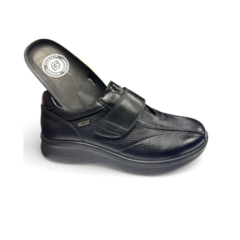 Zapatos de horma ancha especial de la marca Alemana G Comfort. Este modelo de alta calidad y capacidad es ideal para pies delicados con anchura, también con plantillas ortopédicas. Fabricado en piel de Yak muy suave y forrado de piel. Plantillas acolchadas de piel extraíbles. Piso muy ligero con una pequeña cuña para estilizar. Sistema Tex impermeables para días fríos y lluviosos. Velcro para un ajuste fácil y cómodo. Calce amplio, si tiene dudas escribanos. Tallas del 36 al 42.