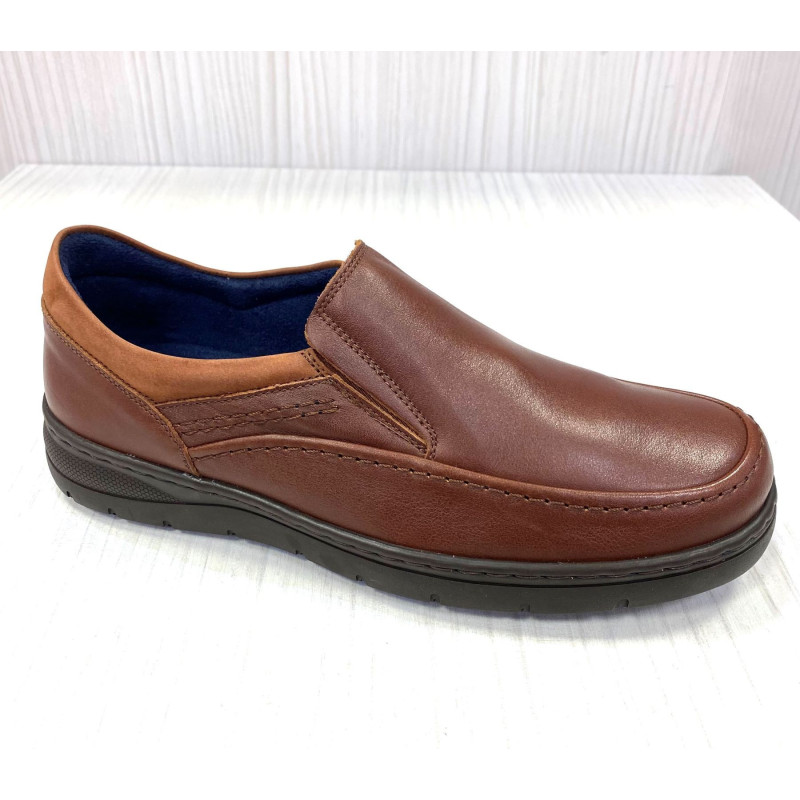 Zapato para hombre mocasines ancho especial de la marca Alemana GCOMFORT. Confeccionado con piel de Yak de alta calidad en el exterior y el interior. Plantillas de piel acolchadas extraíbles. Suela con base ancha y muy ligera. Ideal para el día a día en un pie delicado. Sistema de ajuste con elásticos. Calce de talla grande, si está entre dos tallas le aconsejamos la menos o llamarnos y le medimos la plantilla.