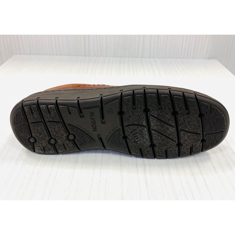 Zapato de piel corte clásico de la marca Notton en color cuero. Calzado sin cordones, su cierre es mediante elásticos que llevan en ambos laterales del empeine. El nombre de la marca se encuentra en el lateral exterior, añadiendo un toque distintivo al diseño. Está fabricado 100% en España y en piel natural de vacuno, detalle de suave piel en la trasera. Además, para mayor comodidad contiene una plantilla antibacteriana extraíble. Forro textil, suela de caucho antideslizante ideal para clima húmedo muy resistente y cosido hidrofugado a la suela. Calce de talla habitual, calza muy bien, sin costuras internas en la pala. Posibilidad de poner plantilla ortopédica, Consúltanos en el teléfono 638 666 532. Hecho en La Rioja.