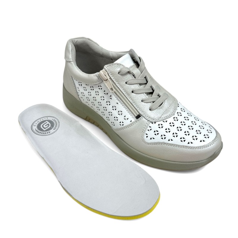 Calzado ideal para mujeres de pies delicados, anchos y con estilo. Zapatos confeccionado en dos tipos de piel natural con sistema Tex impermeable. Contiene mas capacidad ideales para juanetes, plantillas ortopédicas. Se extrae la plantilla acolchada. Suela con una pequeña cuña muy ligera y cómoda. Contiene cordones de ajuste y cremallera para facilitar las puestas. Calza muy bien pero si tiene dudas consúltenos.
