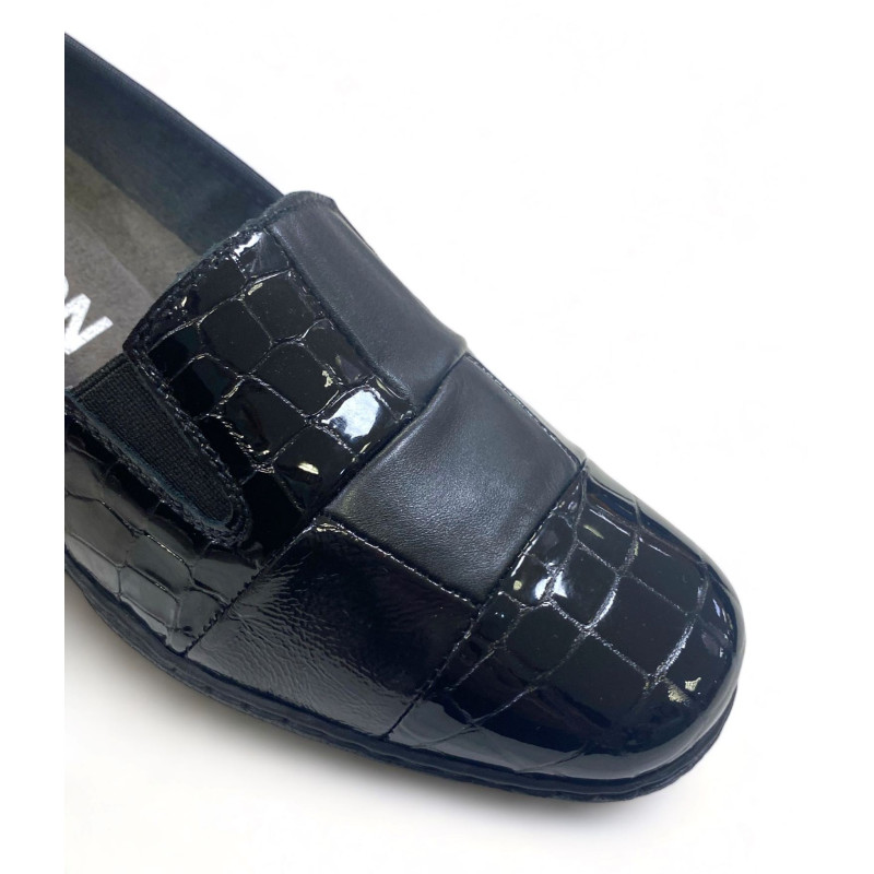 Uno de los zapatos mas cómodos hechos en España, ancho especial fabricado en La Rioja. Confeccionado en piel charol lisa, coco y napa color gris y negro de entretiempo. Se adapta a juanetes o a la a anchura del piel sin dolor. Detalles en la piel lo que le dan un aspecto mas moderno dentro de un calzado confort. Los zapatos mas cómodos para el día a día. Sistema de ajuste mediante elásticos en el empeine lo que hace que se pegue al pie para un mejor efecto. Suela muy ligera, aislante del frio totalmente antideslizante de caucho. En el interior recibirá dos pares de plantillas para adaptarlo mejor a su horma. Calce talla habitual. Plantilla transpirable extraíble. Hecho en España. Porte gratis. Tallas del 35 al 41. Cualquier duda le atendemos por wasap.