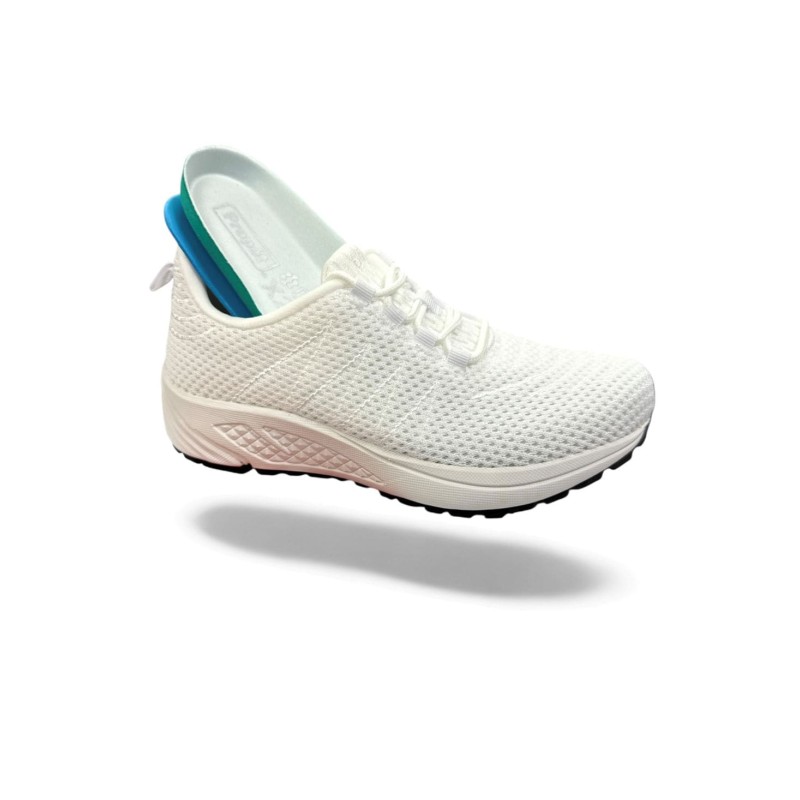 Zapatillas deportivas especialmente preparadas para mujeres con problemas reales de pies anchos, delicados y con posibilidad de poner plantillas ortopédicas. Este calzado es ideal para el dia a dia, para largos paseos. Lo recomendamos también personas que se les inflaman los pies ya que contienen dos plantillas una azul de relleno para ponerla debajo de la negra, esto lo que hace es que depende de cómo esté el pie podríamos las dos o solo la negra. Alta capacidad en la pala perfecta para dedos delicados. No tiene costuras internas. La suela tiene zonas antideslizantes para que no resbale y tenga mucha ligereza y estabilidad. La talla es amplia, comprar la talla habitual. Si tiene dudas puede ponerse en contacto con nosotros y le podemos medir las deportivas. Diferentes colores.