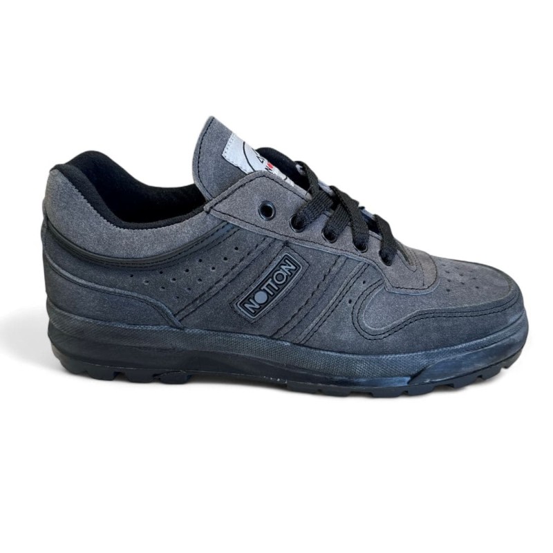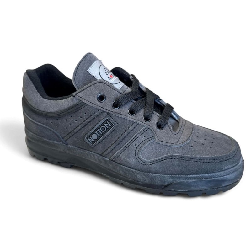 Bota de montaña o campo impermeable Notton Tex de caña baja. Fabricada en piel nobuck gris y Marrón. Cordonera ajustable. Suela de caucho vulcanizada antideslizante preparada para la montaña a la perfección. Plantilla extraible preformada. Recomendamos comprar una talla mas que en el calzado habitual que suela llevar. Si tiene duda con las tallas nos consulta.