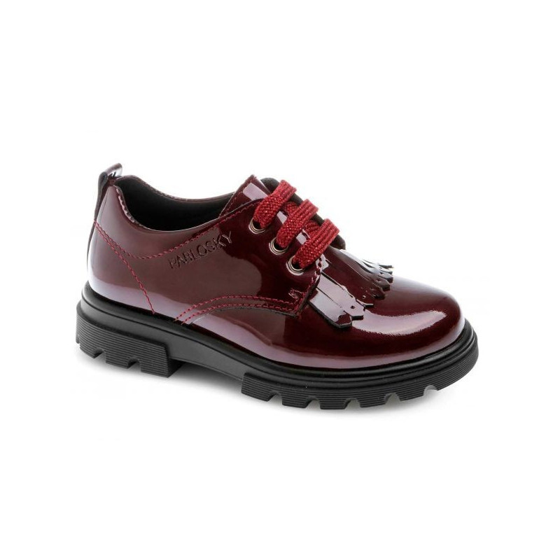 Zapato vestir charol Kayak Berenjena de PABLOSKY. Modelo con una piel de color precioso, con detalles como su lengüeta y cordones con brillantina. Suela de grosor todo terreno, antideslizante. Podremos conseguir un look vestido y sport. Calce normal. HECHO EN ESPAÑA.