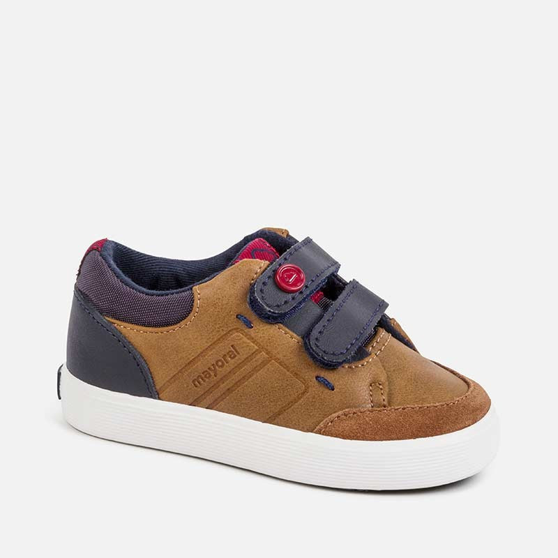 Zapato sport de moda MAYORAL. Modelo con una bonita combinación de colores, azul, gris y marino. Cómoda suela flexible y antideslizante para los primeros pasos de nuestros peques. Plantilla especial para el pie del nene, con señal de talla. Calce normal-amplio