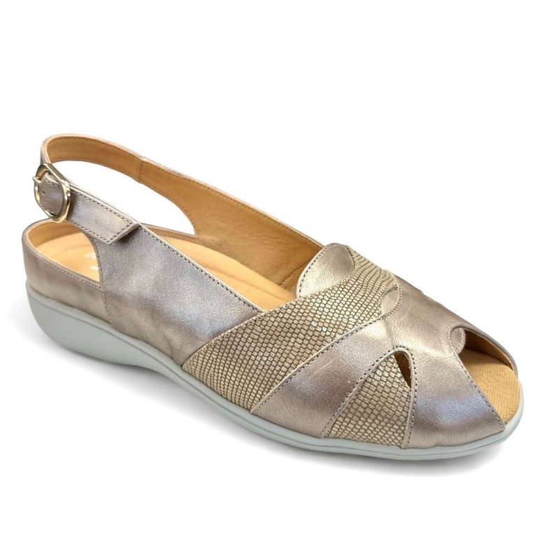Sandalias ideales para pies anchos y delicados. Fabricado en La Rioja por Pitillos. Plantillas extraíbles con posibilidad de poner ortopédica fina. Piel gravada en oro. Recoge muy bien juanetes. Suela ligera y ancha con buena base. Hebilla en la trasera, una vez que la ajuste una vez no hace falta tocarla. Calza normalmente talla habitual. Disfruta de estas sandalias todo el verano sin dolor.