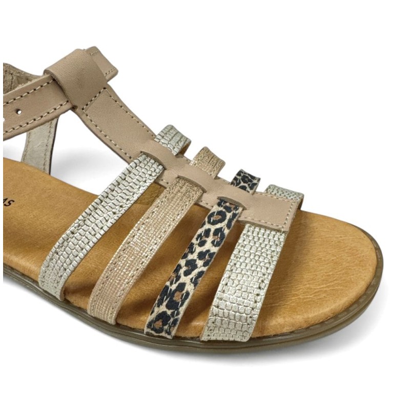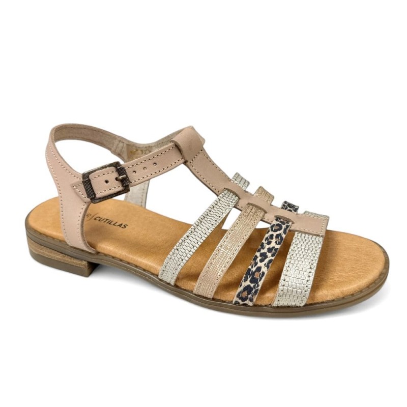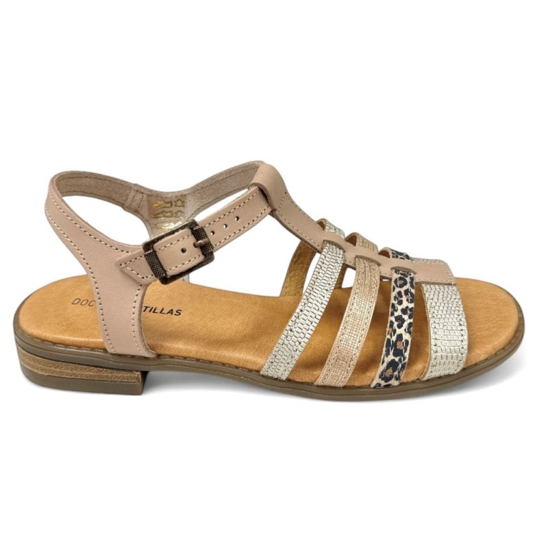 Sandalias muy bonitas para pies delicados de la marca Doctor Cutillas en piel tubular antiroces beige. Plantilla extraible muy acolchada y cómoda. Suela muy ligera, estable y antideslizante. Esta bonita sandalia lleva un sistema de velcro en el empeine para ajustar fácilmente pero parece una bonita hebilla tipo nacar( puede variar los tonos del adorno). Calce normal de talla.