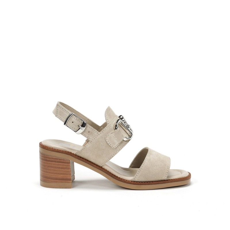 Sandalia de la alta calidad, nueva temporada primavera. Moda en tus pies de la mano de Dorking by Fluchos, marca de La Rioja. Fabricado en pieles de vacuno color crudo y negro, tejido transpirable en su interior. Sistema de cierre con hebilla, planta en piel acolchada. Suela con tacón cuadrado base nueva, estabilidad en cada paso. Pala formada por tres tiras unidas con buena sujeción del pie, adornos moda con tachas de diferentes formas. Calce normal. Hecho en España.