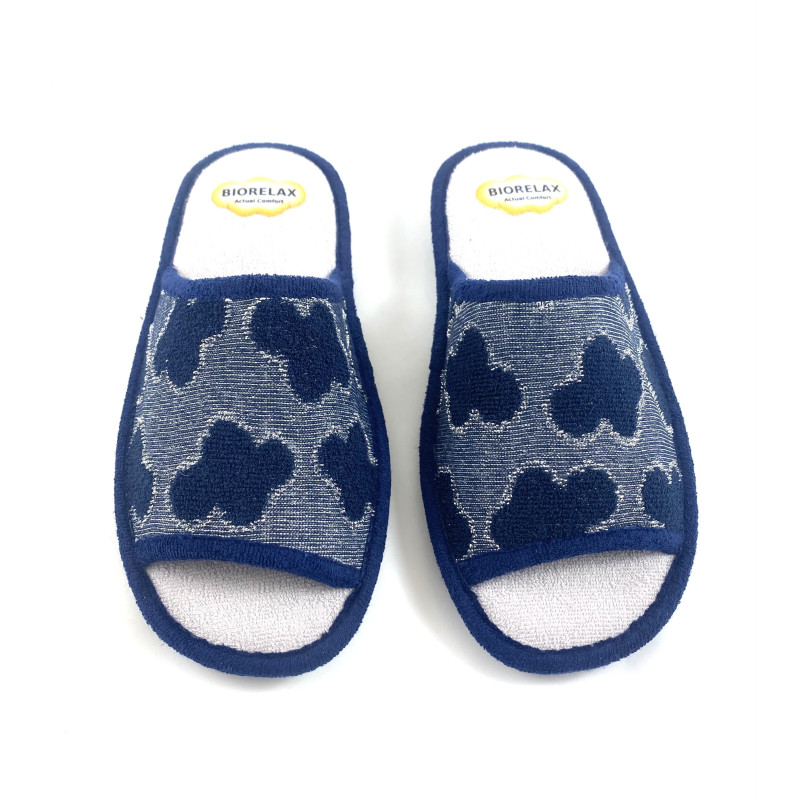 Zapatilla de casa para mujer de la marca riojana Cosdam Biorelax. Fabricada en tejido de alta calidad transpirable con termosellado estampado de mujer con corazón azul con estampado. Corte cerrado en la pala y abierto por detrás. Este modelo se caracteriza por su apoyo plantar con colchón viscoelástico de alta densidad de alta recuperación, en ella sentirá que flota. Cuidara el confort descansando en estas super zapatillas. Suela realizada en caucho natural totalmente antideslizantes muy cómoda. Calce normal, recomendamos elegir su talla habitual o si tiene dudas la superior. Hecho en La Rioja.