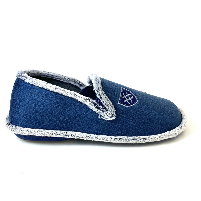 Zapatilla de calidad cerrada con elásticos en el empeine para casa acolchada chico, fabricada por la marca Riojana Cosdam Biorelax. Este modelo lleva el acolchado técnico Biorelax que flota, muy cómoda. El exterior es de tejido acolchado y el interior tipo pelo. Plantilla no extraíble. En ansertienda.com te queremos ofrecer lo mejor al mejor precio razonable. Suela de caucho natural antideslizante, calza muy bien al meter el pie, calce habitual - amplio. Fácil limpieza. Hecho en España. Plantilla no extraíble. Colores azul y kaki.