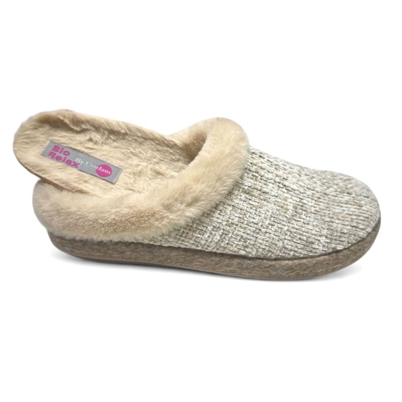 Zapatilla para casa de alta calidad Biorelax para mujer, de la marca Riojana Cosdam. Nueva colección otoño-invierno 21-22. Fabricada en materiales técnicos transpirables, tejido suave al tacto, interior fabricado con pelo y plantilla extraíble normal sin acolchado bio, exterior mezcla de tonos. Suela caucho natural antideslizante. Talla amplio. Hecho en España.