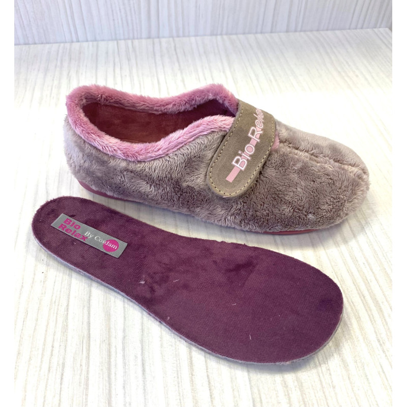Zapatilla de casa destalonada para mujer, fabricada por la marca Riojana Cosdam Biorelax. Esta zapatilla de continuidad es de la sección sin acolchado especial pero muy cómoda y de una calidad muy superior comparada con otras zapatillas. Contiene plantilla extraíble con una pequeña cuña interior. En ansertienda.com te queremos ofrecer lo mejor al mejor precio razonable. Suela de caucho natural antideslizante media vulcanizada, calza muy bien al meter el pie, calce habitual. Fácil limpieza. Hecho en España.