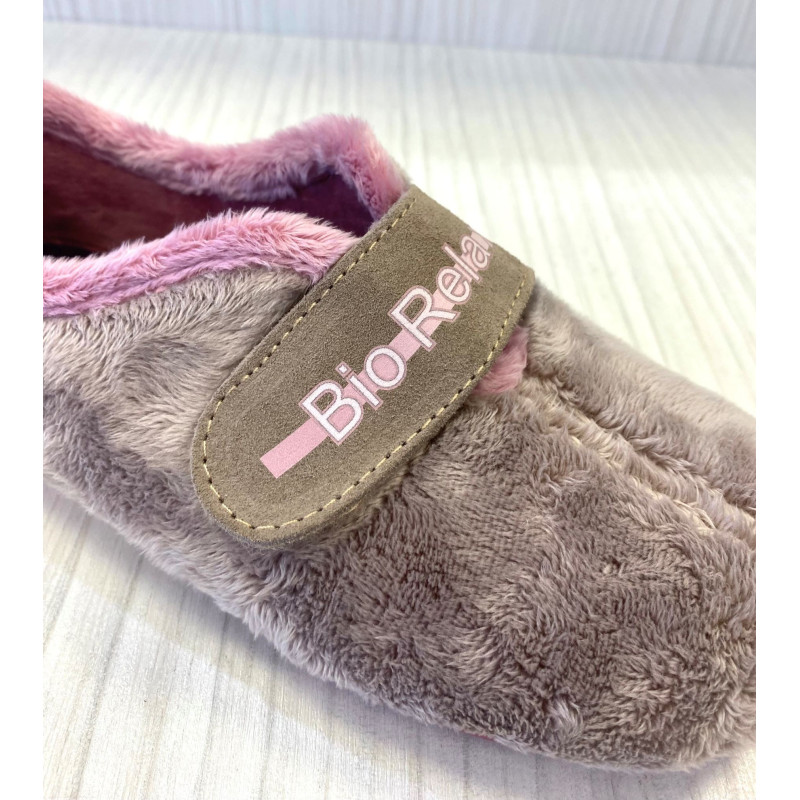 Zapatilla de casa para mujer con planta acolchada de fácil recuperación, amortigua la pisada en cada paso. Fabricada por la marca Riojana Biorelax. Confeccionada en tejido de pelo fino Suapel para la nueva colección otoño. Suela de caucho natural antideslizante y ligera con una pequeña cuña. Calce normal-amplio. Hecho en España.