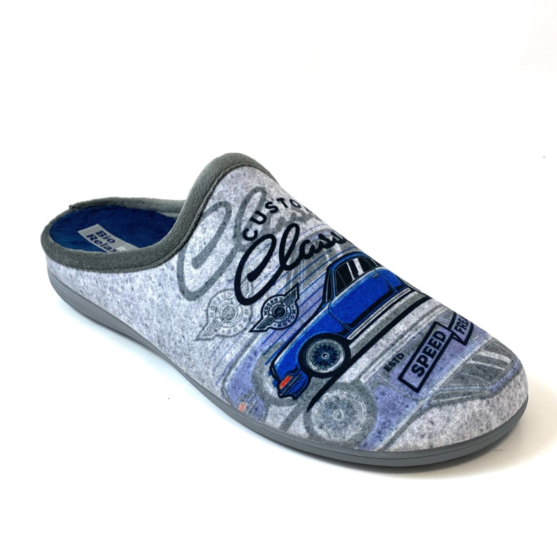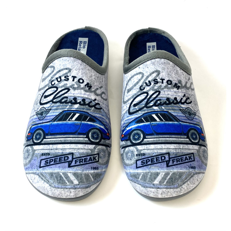 Las zapatillas Biorelax destacan por su especial sistema de construcción que las hace firmemente cómodas al tiempo que apropiadas tanto para los hombres y mujeres que quieren disfrutar de una gran comodidad al llegar al hogar, sin renunciar a la moda. Están confeccionadas con tejidos de alta calidad, tacón de látex natural y piso antideslizante. Dibujo de coche antiguo muy bonito como detalle. Calce normal. Hecho en España.