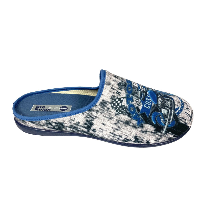 Las zapatillas Biorelax destacan por su especial sistema de construcción que las hace firmemente cómodas al tiempo que apropiadas tanto para los hombres y mujeres que quieren disfrutar de una gran comodidad al llegar al hogar, sin renunciar a la moda. Están confeccionadas con tejidos de alta calidad, tacón de látex natural y piso antideslizante. Dibujo de coche antiguo muy bonito como detalle. Calce normal. Hecho en España.