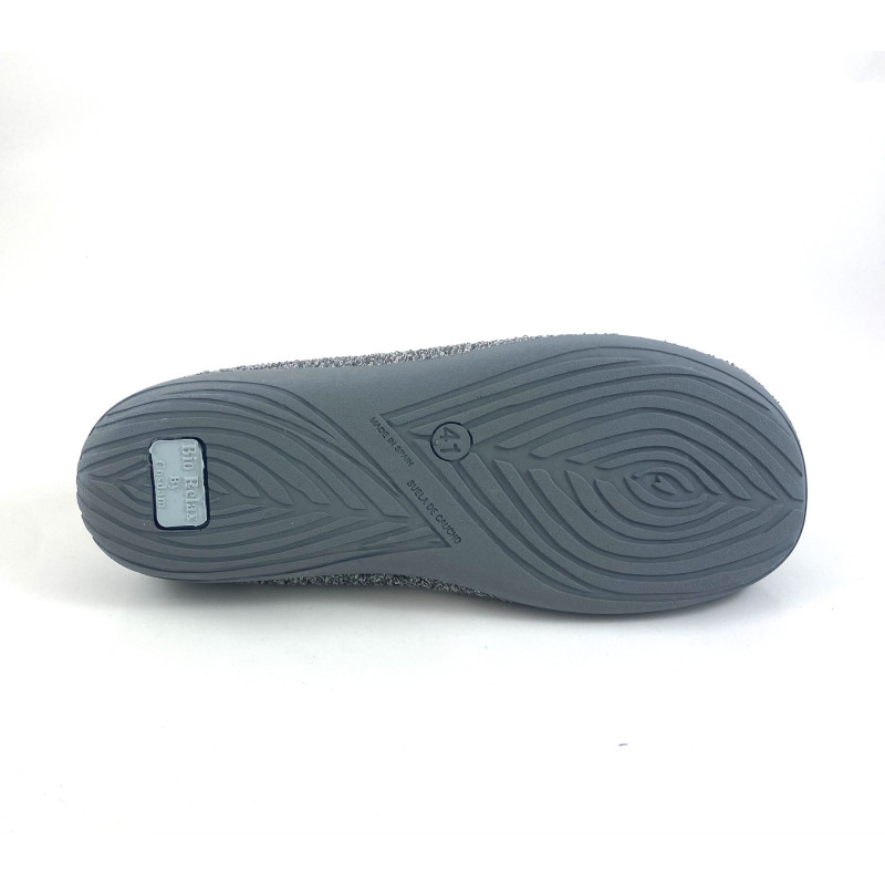 Zapatilla de casa descalza para hombre, de la marca Cosdam Biorelax en color grisl. Fabricada en material textil de primera calidad tanto el exterior como el interior, 100% transpirable. Diseño ideal para los amantes de los viajes, la playa, el surf... Plantilla al tono con efecto Biorelax para ofrecer el mejor descanso a tus pies, con el nombre 'Biorelax' grabado en ella. Suela de goma antideslizante. Hecha en Arnedo La Rioja. Calce talla normal. Si tiene el pie anchito mejor elegir una talla mas.