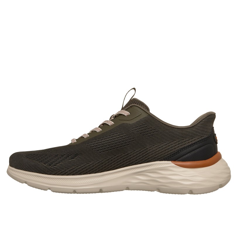 Modelo de zapatillas Slip Ins para hombre de alta belleza y gran comodidad. Uno de los modelos mas anunciados en television. Envuelve tus pies en esta maravilla sin tener que agacharte ni ajustarte los cordones, simplemente dejando caer el talón en su trasera patentada Heel Pillou. Este modelo sin cordones presenta una parte superior acolchada Cozy Fit™ y una capa superpuesta sintética con cordones elásticos ya atados, amortiguación Contour Foam™ en la media suela y nuestra característica plantilla con amortiguación Skechers Air-Cooled Memory Foam™.Una zapatilla versátil para caminar cómodo todo el dia.