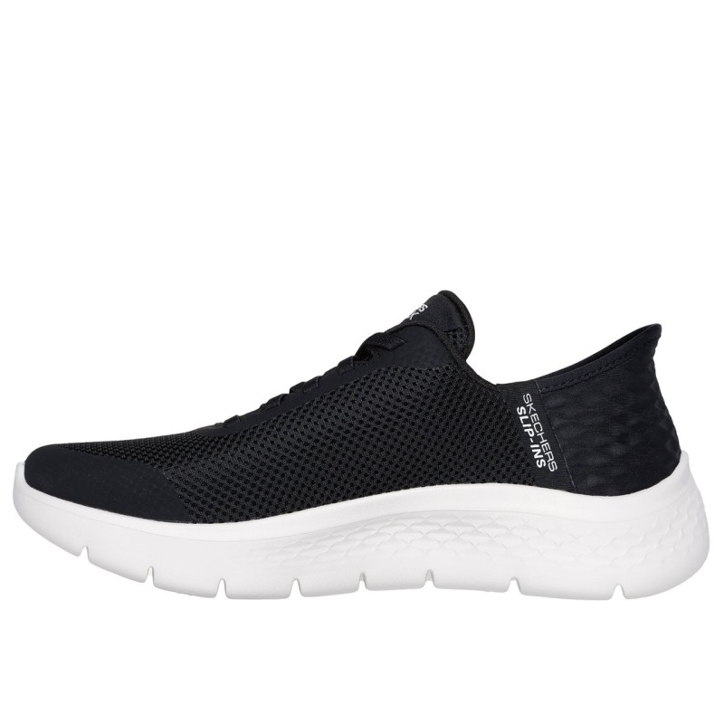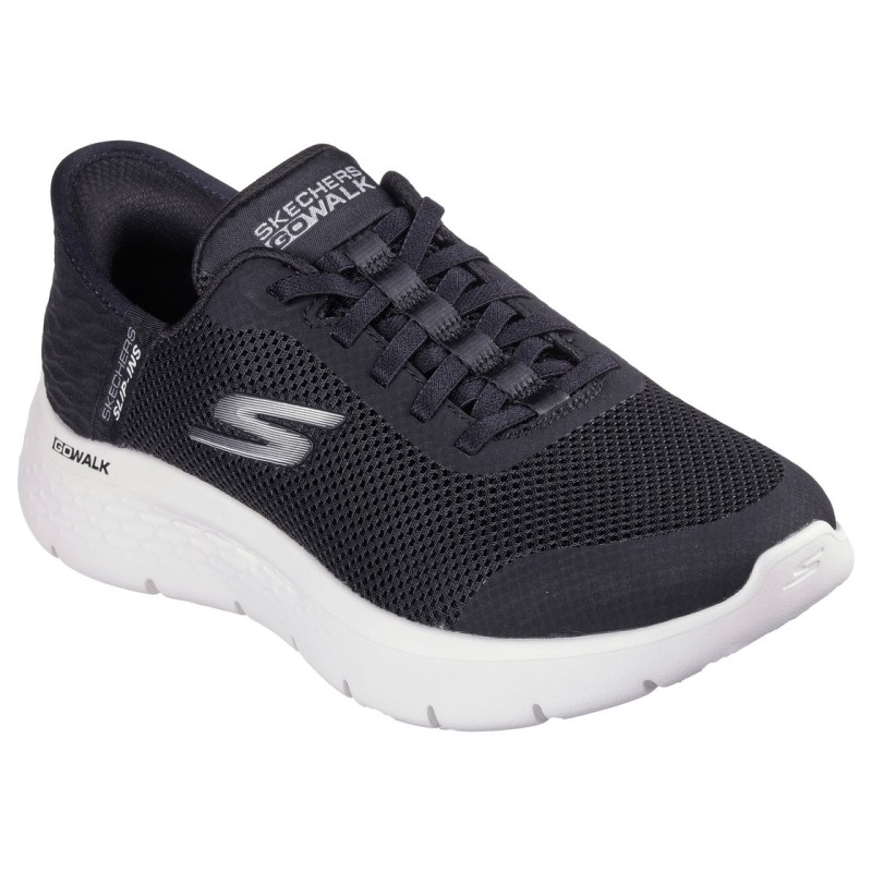 Deportivas Slip ins o calce sin agacharte. Modelo con un calce extra ideal para pies mas anchoes y delicados. Con amortiguación que te ofrecen las Skechers Hands Free Slip-ins® GO WALK® Flex - Grand Entry. Diseñado con nuestra exclusivo Heel Pillow™, este modelo deportivo cuenta con una parte superior de malla y material sintético con cordones elásticos, plantilla Skechers Air-Cooled Memory Foam®, acolchado especial, amortiguación ligera Ultra Go® y Flex Pillars™ para un mayor apoyo. Se puede extraer las plantillas y podemos poner una ortopédica, pregúntanos. Avisamos que este modelo debido a su gran demanda se agota mas rápido. Calce de talla amplio, si esta entre dos tallas no elegir la más grande. Modelo transpirable con tejido un poco calado en la pala y laterales.