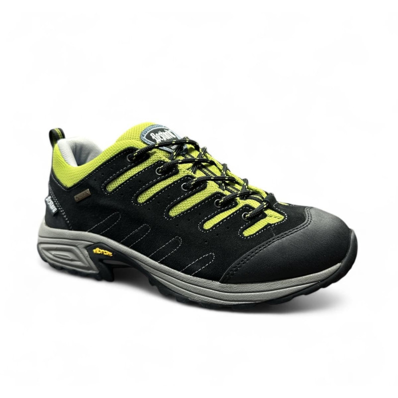 Deportiva tipo trekking para hombre de máxima calidad, fabricada en Arnedo, La Rioja. Confeccionada en piel nobuk verde militar, tejido tecnico naranja oscuro en trasera y detalle en puntera de protección negro. Membrana impermeable Notton-Tex de alta calidad donde nos mantiene el pie seco y sin humedad. Suela de caucho natural antideslizante de taco con agarre. Ideal para caminatas por senderos de piedras y tierra. Plantilla antibacteriana preformada-. Calce de talla normal. Hecho en La Rioja.