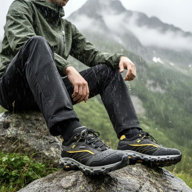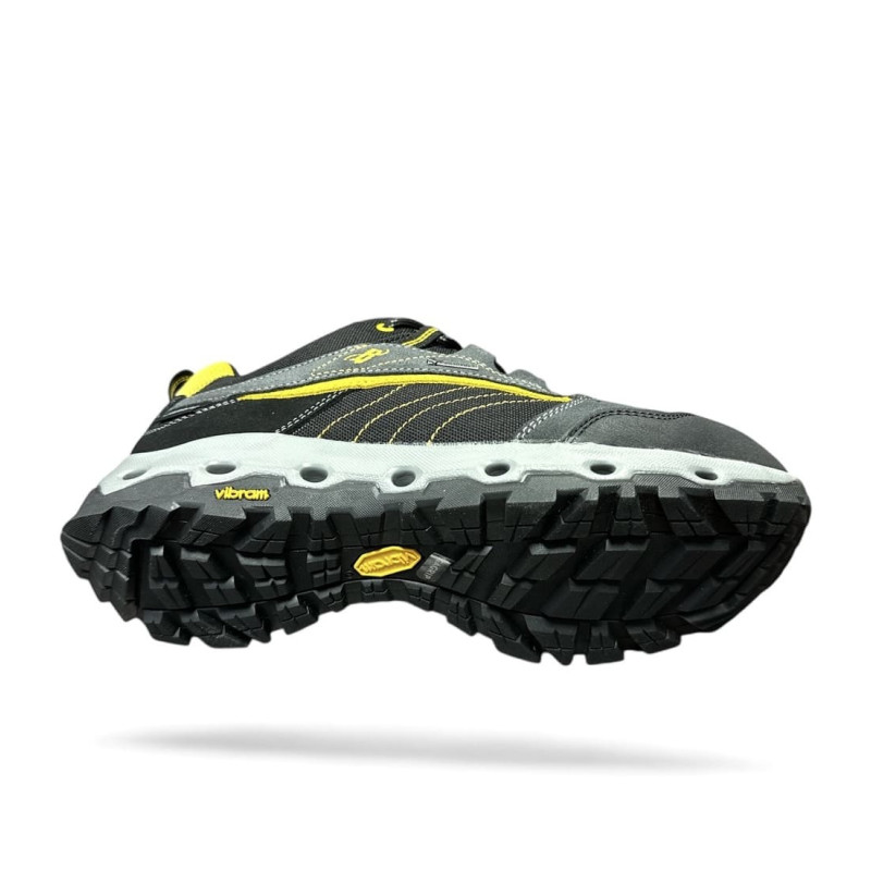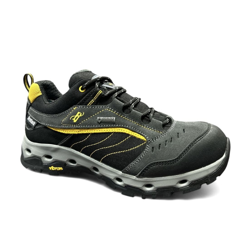 Deportiva tipo trekking para hombre de máxima calidad, fabricada en Arnedo, La Rioja. Confeccionada en piel nobuk color amarillo camel, tejido negro en trasera y detalle en puntera de protección negro. Membrana impermeable Notton-Tex de alta calidad donde nos mantiene el pie seco y sin humedad. Suela de caucho natural antideslizante de taco con agarre. Ideal para caminatas por senderos de piedras y tierra. Plantilla antibacteriana preformada-. Calce de talla normal. Hecho en La Rioja.